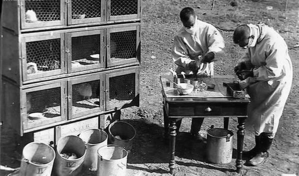 1921年,伍连德(左)和同事在户外开展瘟疫实验