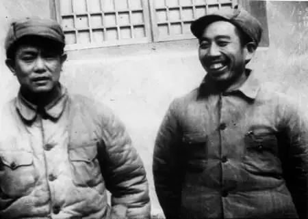 中原军区司令员李先念(左)与副司令员王震(右)合影