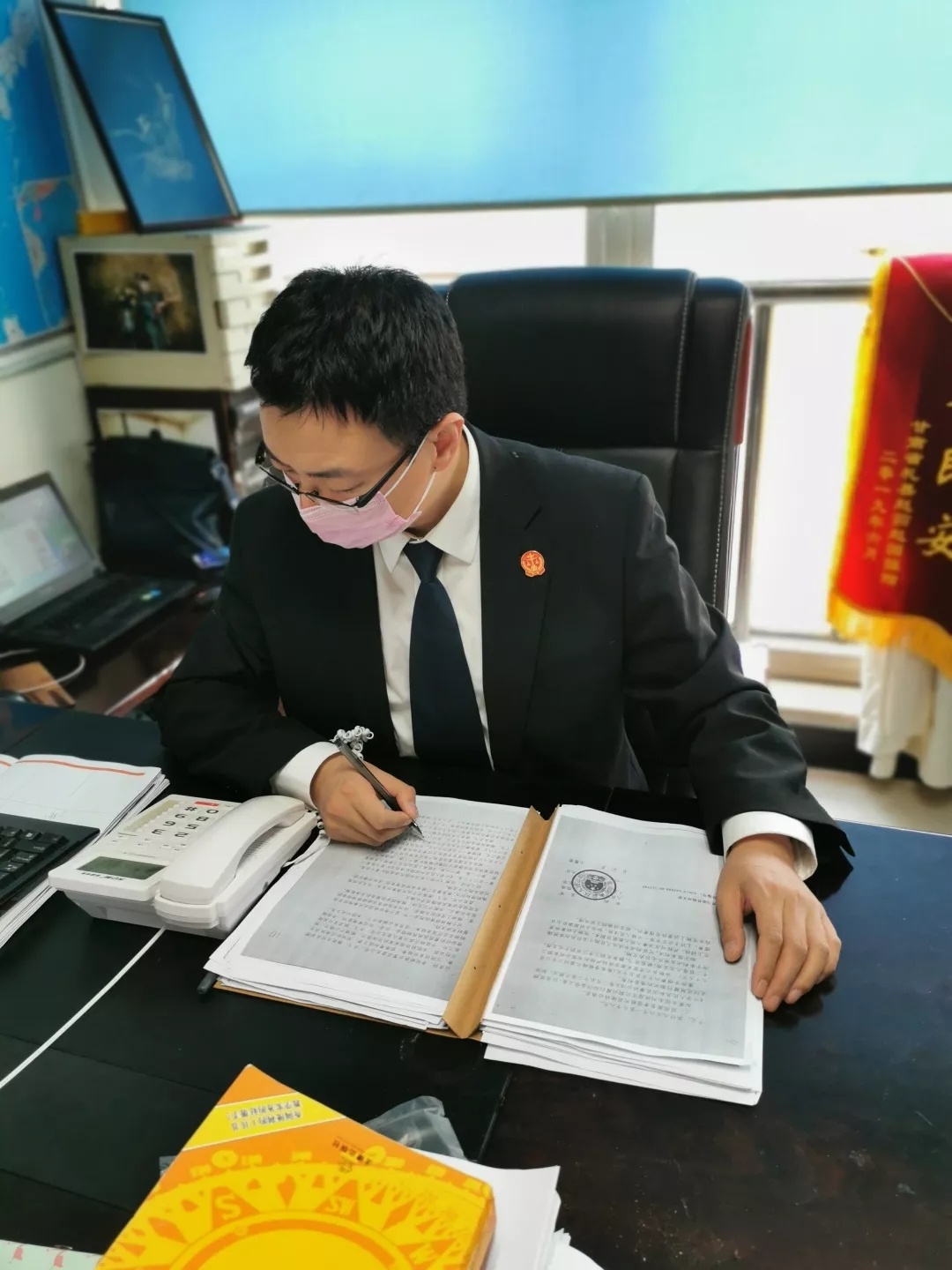 救助金到账了,可又是新冠肺炎疫情防控期间,但这个钱不能拖!王志勇效仿网上远程开庭,在视频中,他为毛女士宣读了发放国家司法救助金8万元的决定,并为她办理司法救助手续。