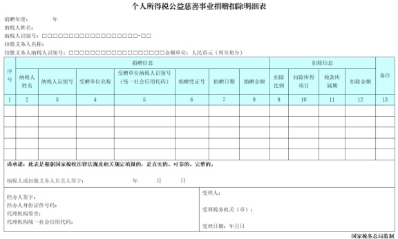 1.第2列“纳税人姓名”和第3列“纳税人识别号”:扣缴单位为纳税人办理捐赠扣除时,填写本栏。个人自行申报的,无需填写本项。