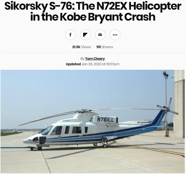 不少科比的球迷也知道,科比还在NBA打球时,就曾乘坐直升机从奥兰治县的家中前往洛杉矶的斯台普斯中心进行比赛。退役后,他也经常乘坐直升机进行家庭旅行、郊游和其他活动。库尔特·迪茨(Kurt Deetz)曾是Island Express的飞行员,还曾在2014年~2016年间驾驶过科比乘坐的直升机。迪茨在接受《洛杉矶时报》采访时表示,“(坠毁的)这架直升机很舒适,也很安全。”他还补充称,坠毁的S-76B飞机状况“非常好”,并表示Island Express遵循了“非常好的维护计划”。