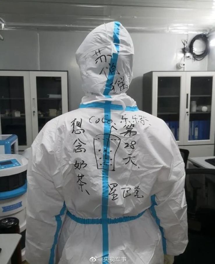比如,她们有的在自己的防护服上写着“想念奶茶”,有的在防护服上写着“想去看演唱会”,有的在防护服上写着“此疫结束,我要去玩耍,想要吃遍天下,大杀四方”,有的在防护服上写着“XXX,等我回去,我们一起去骑车”等等,从这些貌似玩笑,实则真心流露的话语中可以看出,这群年轻人,她们在面对生死、苦累、美丑的考验面前,她们充满着积极、乐观、向上的革命乐观主义精神。