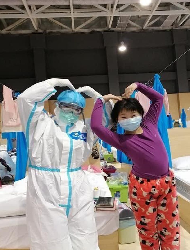 田芳芳和她的伙伴们在工作中,为了帮助病友们增进疗效,她们配合中医治疗,教大家学习养身保健操,如八段锦、健身操等。还在方舱里积极营造亲情、关怀的氛围,给病友们讲故事、做按摩、与病友们微信聊天等,帮助大家增强心里抵抗能力。一位大妈在发给田芳芳的微信里说“谢谢你,我的女儿!”方舱里还有一位9岁的小女孩非常喜爱田芳芳这位大姐姐,治疗之余总是跟在她身后,成了她的小跟班。正是这种“家”的氛围,使方舱里始终充满着积极乐观的情绪,激励大家与疫魔抗争,增强了战胜疫魔的信心和勇气。