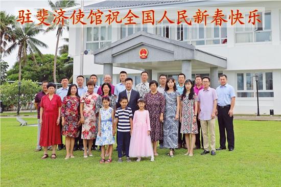 值此庚子鼠年新春佳节到来之际,中国驻斐济使馆全体人员向祖国人民和海外华侨华人致以诚挚问候和良好祝愿。祝伟大祖国繁荣昌盛,兴旺发达!祝全国人民新春快乐,阖家幸福!