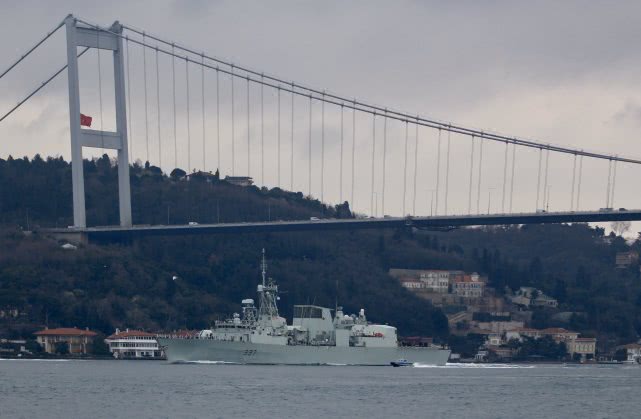 土耳其伊斯坦布尔新闻网站报道称,这些军舰已经通过了达达尼尔海峡、马尔马拉海,朝着博斯普鲁斯海峡方向驶去。北约舰艇编队包括加拿大“弗雷德里克顿”号护卫舰(FFH 337)、意大利“弗吉尼奥·法桑”号护卫舰(F 591)和土耳其“萨里黑斯”号护卫舰(F 246)。