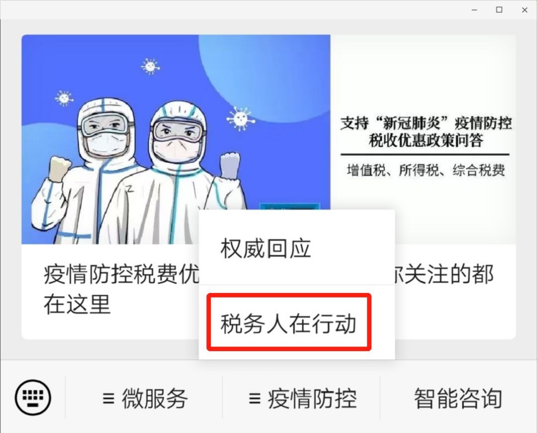 点击“疫情防控”菜单中的“税务人在行动”