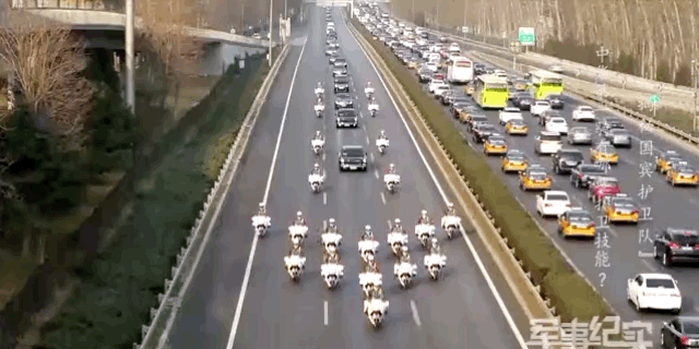 他们整齐地疾驰在国宾车队的前方和两侧