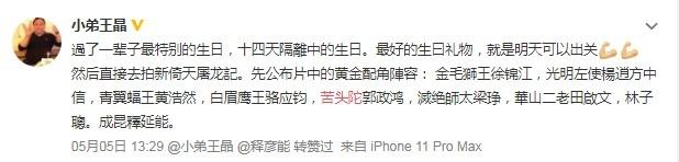 5月5日,王晶就在网上发文表示5月6日将复工拍摄新版《倚天屠龙记》,同时公布片中的黄金配角阵容:徐锦江饰金毛狮王,方中信饰光明左使杨逍,黄浩然饰青翼蝠王,骆应钧饰白眉鹰王,郭政鸿饰苦头陀、梁琤饰灭绝师太、田启文、林子聪饰华山二老、释延能饰成昆。