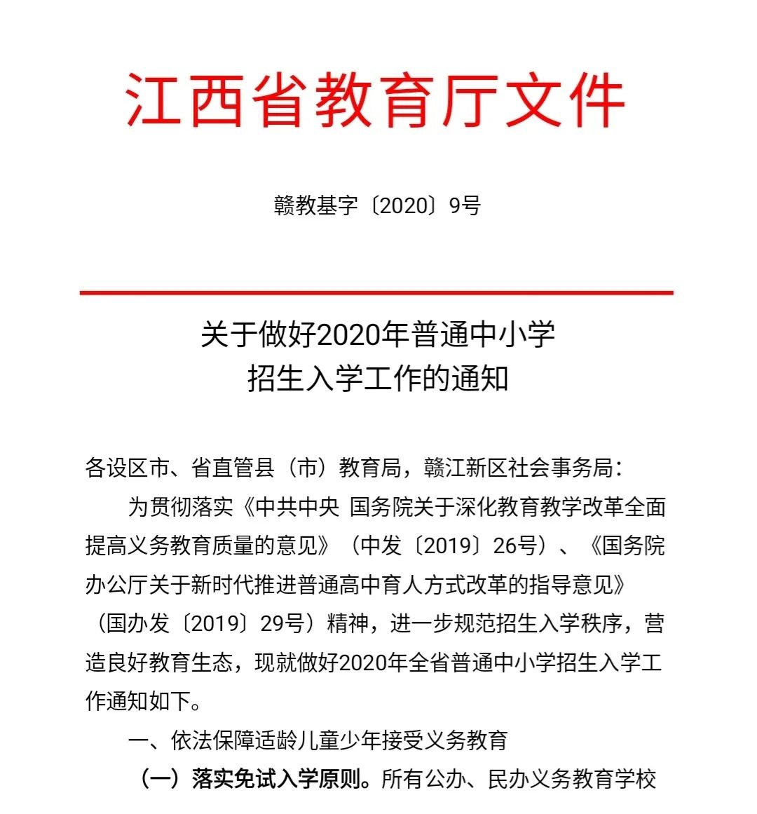 近日,江西省教育厅印发了《关于做好2020年普通中小学招生入学工作的通知》,进一步规范2020年全省普通中小学招生入学秩序。