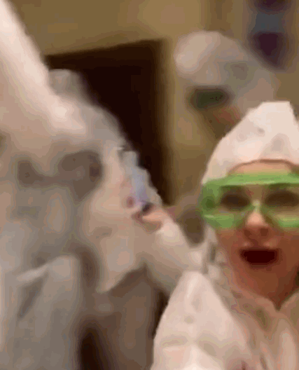 叶卡捷琳娜的丈夫、32岁的瓦伦丁(Valentin Didenko)给在场宾客制造了一个“梦幻”的惊喜。他准备了约30公斤的干冰,让大家都象征性地穿上“防护服”,戴上护目镜,然后将干冰一股脑全部扔进泳池。