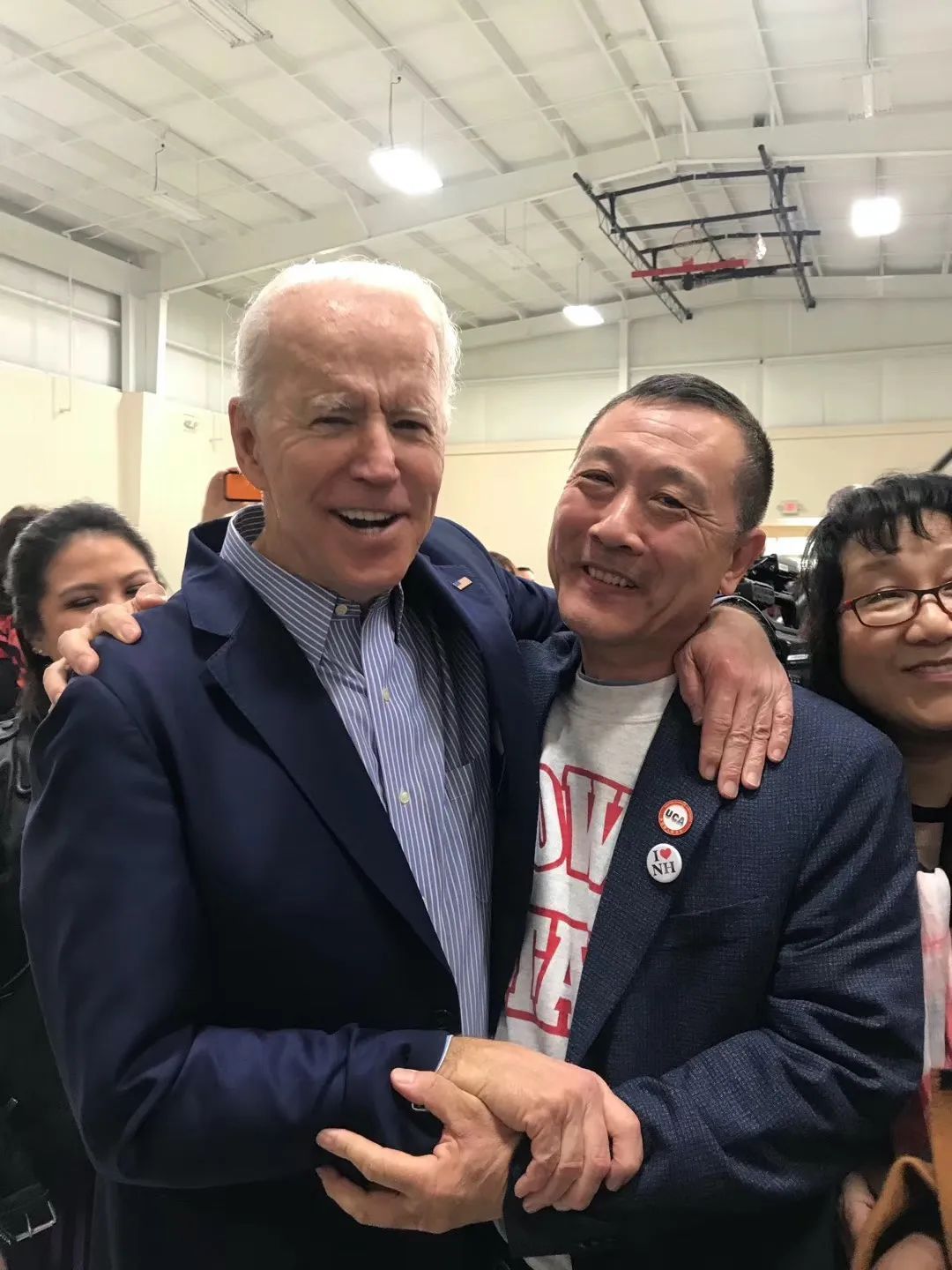 2月29日,南卡罗莱纳州民主党初选活动中,美国无国界教育主席、爱荷华州华人协会执行主席燕晓哲与候选人拜登在一起。(图片由受访者提供)