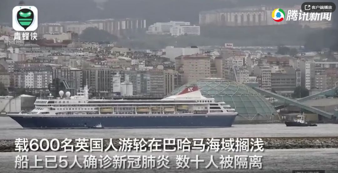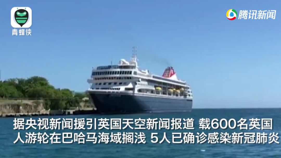 3月15日,据英国天空新闻消息,一艘载有600名英国人的游轮正搁浅在巴哈马海域,船上已有5人确诊感染新型冠状病毒。据悉,包括1名医生在内的20名乘客和20名船员正在进行隔离,具有感冒症状的人数还在增加。
