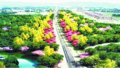 据介绍,绿化项目将结合疏解整治促提升专项行动,统筹实施沿线环境整治、造林绿化等,打造集中连片、点线面结合的风景线,织补完善城市生态空间,营造清新、整洁、靓丽的城乡环境。树种选用上以油松、桧柏等常绿乔木为主,搭配元宝枫、栾树等彩叶乔木,突出色彩变化,强调乡土彩色植物应用,构建大尺度近自然郊野绿色景观廊道,并将于年底前完成主体工程。
