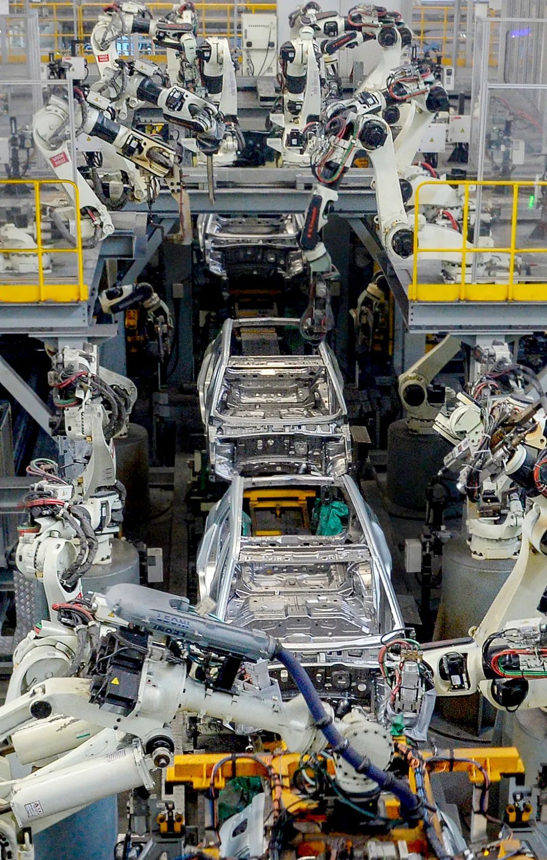如今,通过对生产线进行自动化升级,长安汽车二工厂每天700余台机器人可同时在生产线上操作,日均有500多台新车完成组装下线,厂自动化率达到92%。