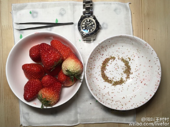 继养乐多事件以后,“王村村和网友的战争”还包括数草莓籽——5颗草莓的籽数量为2892颗——成功吓哭了患有密恐的网友;