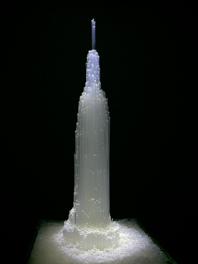 类似的事儿还有不少,比如花3个月用20000根光纤搭建出埃菲尔铁塔、帝国大厦模型,用磁悬浮做出无线供电纸灯和车载装饰——隔壁网友看到都馋哭了。