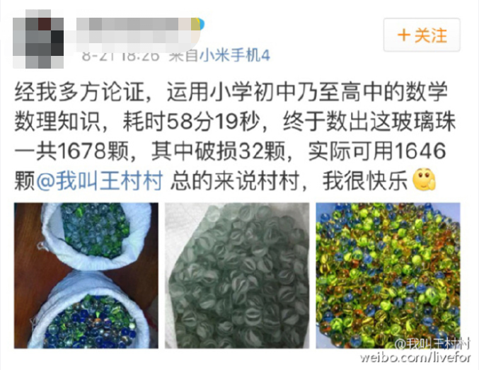 收到奖品以后,这位粉丝动情回忆,他耗时58分19秒,终于数出弹珠1678颗,其中破损32颗,实际可用1646颗。