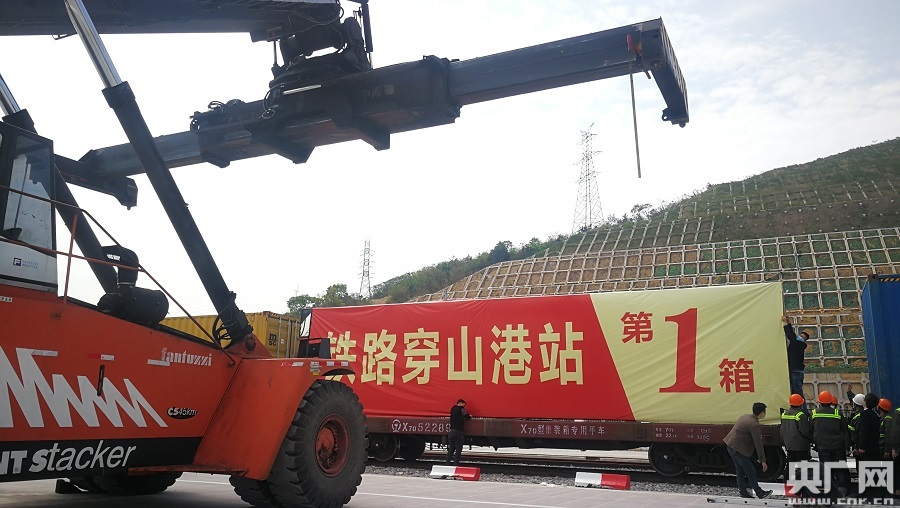 15日早上7点多,从浙江湖州开来的海铁联运班列缓缓驶进宁波舟山港穿山港区。上午11点左右,随着贴有“铁路穿山港站第1箱”标语的集装箱从“湖州—宁波舟山港”海铁联运班列上稳稳吊起、卸下,宣告宁波舟山港铁路穿山港站正式启用开办货运业务。