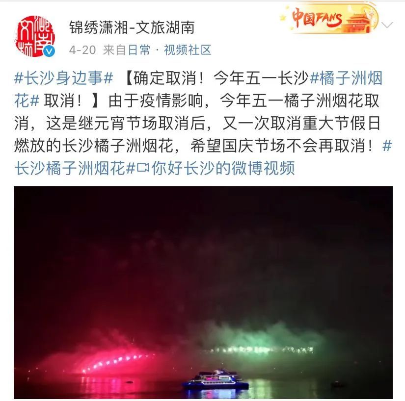 官方表示,由于疫情的情况,根据现有工作安排,目前已经取消了五一橘洲焰火燃放。这样一来,根据之前公布的烟花燃放安排,今年的橘洲烟花只剩下国庆节一场了。