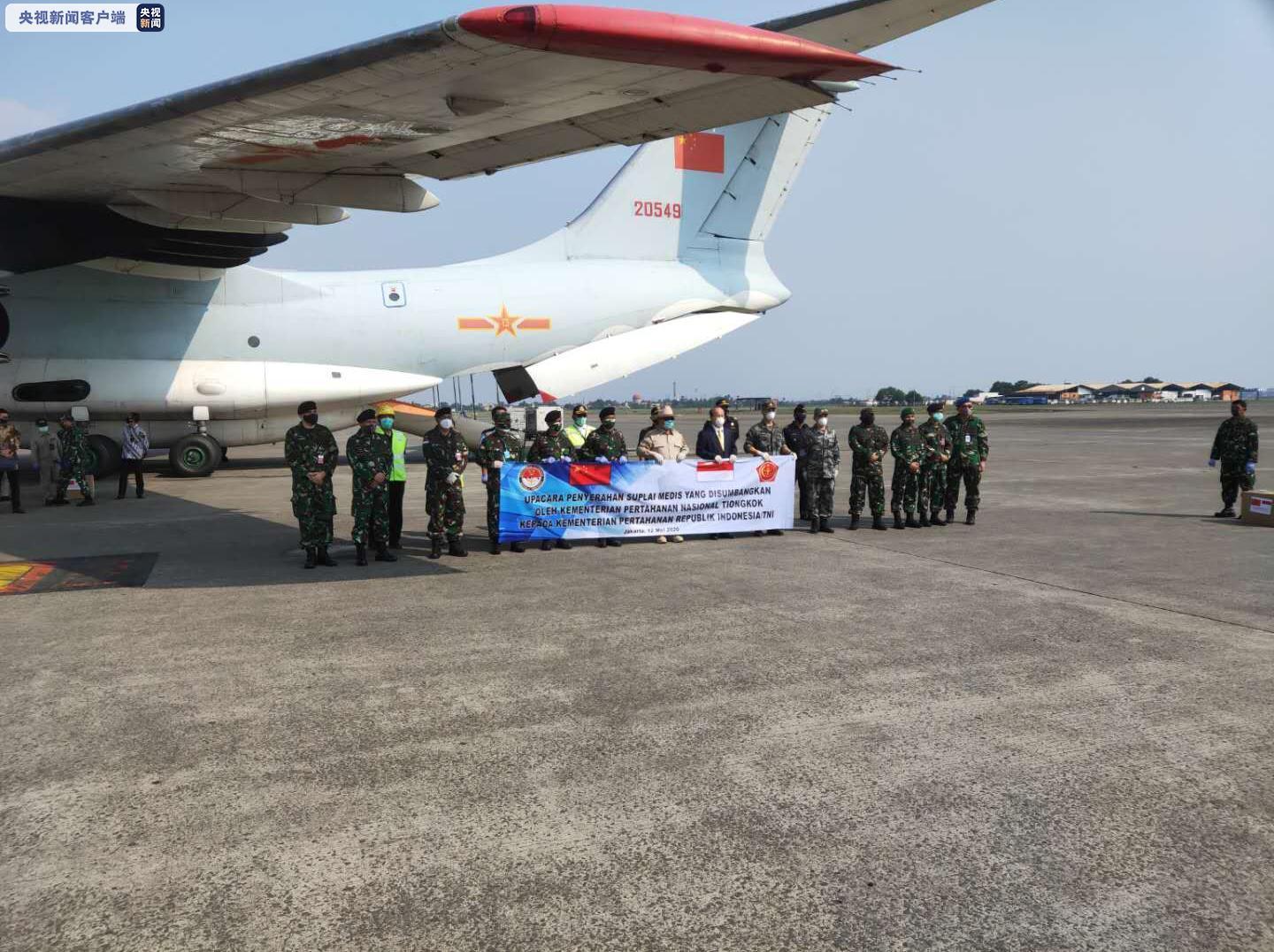 中国政府援助印尼军方运输抗疫物资抵达雅加达