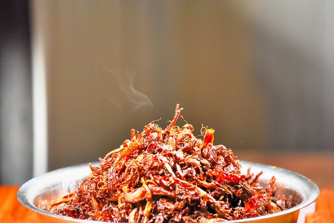 制作油鸡枞,对鸡枞的要求就没有干鸡枞、水鸡枞那么高,制作时也只需将鸡枞洗净撕开,用适量的热油炸。需要长期存储的就炸干点,如果只是眼前吃可以炸得不太干。油鸡枞味道,可以说是很多人记忆里最难忘的一抹香了。