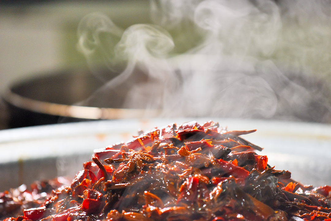 制作水鸡枞不仅鸡枞必须是好的骨朵,用的辣椒也必须是上好的,不然做出来的水鸡枞不仅颜色不好看,吃起来的感觉也不好。制作过程中不能碰油,只要碰到油了就容易腐烂变质。