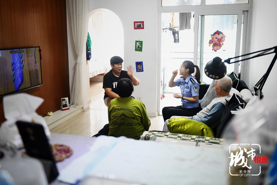 为了帮助更多聋哑人,去年5月,“巧姐无声警务室”成立,越来越多的民警开始自学手语,走进聋哑人的世界。新华网 彭博 摄 陈雨 文