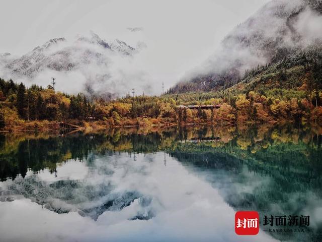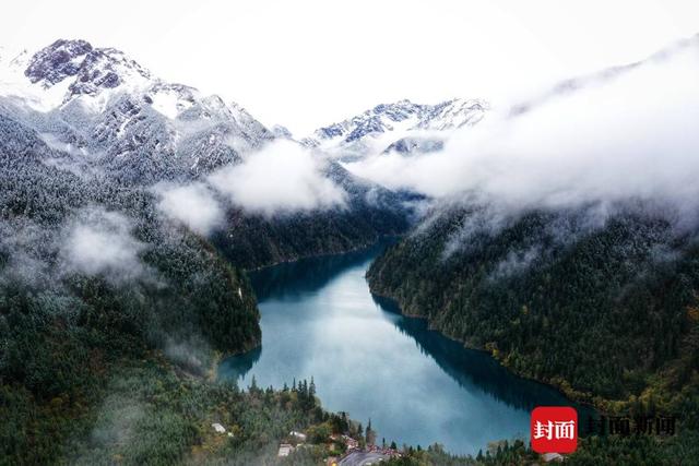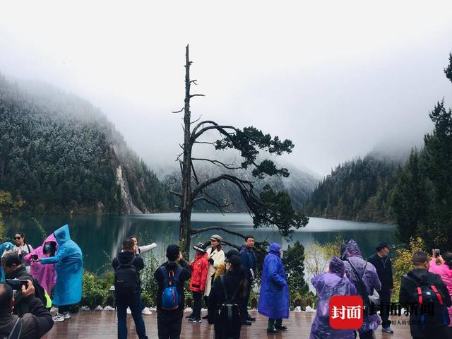 当天,不少来到九寨沟、黄龙、达古冰川、四姑娘山景区的游客注意到,一份惊喜正等待着他们。天空中飘起零星的雪花,目之所及是轻盈如烟的云雾、澄净碧蓝的海子,还有银装素裹的山峰与树木。