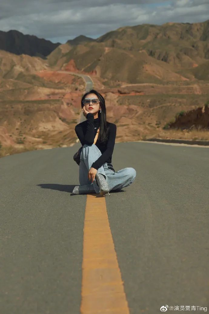 演员贾青在公路中央拍照发微博 交警警告:请删除