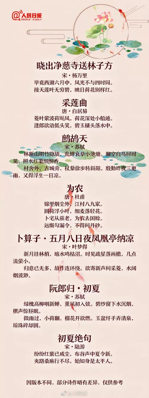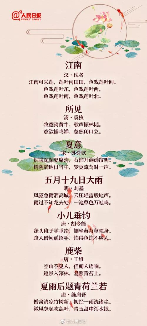 人民日报:60首描写夏天的经典诗词,让孩子学学古人笔下的夏韵