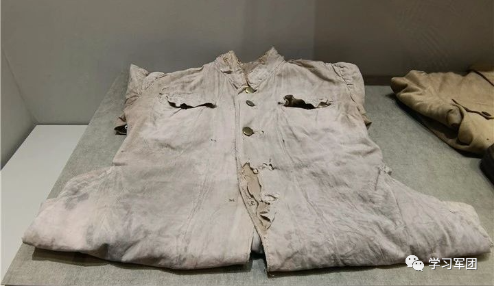 这件衣服上留下了被敌人子弹打穿的6个孔