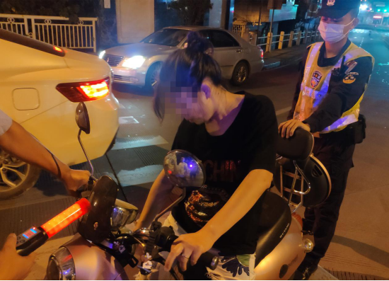 10月8日凌晨0时许,东莞市公安局交警支队石龙大队在辖区源林路与滨江路交汇处设卡开展酒驾毒驾专项行动时,发现一辆无号牌两轮电动车缓缓驶来,车上共搭乘3名成年人,属于超员驾驶。