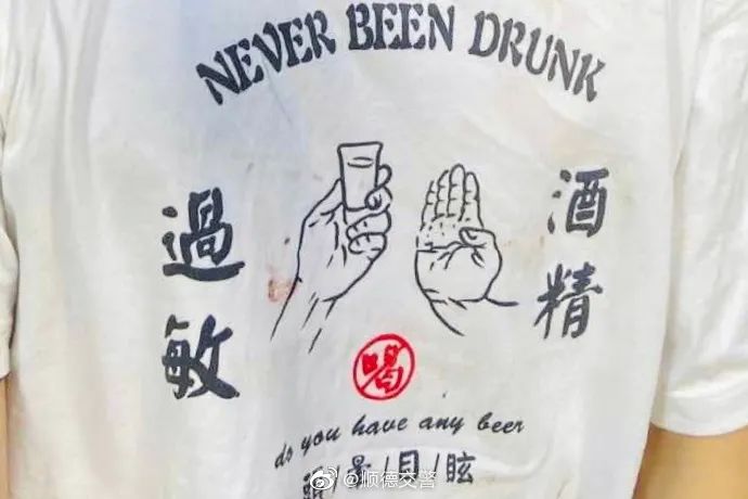民警还发现吴某的短袖T恤胸前印着“酒精过敏”“头晕目眩”的文字,原本个性十足的衣服,变成了“预言之衣”。