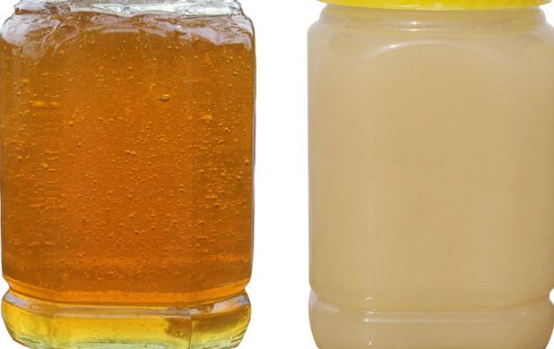 当蜂蜜严重发酵的时候,打开蜂蜜容器的时候已经可以闻到酒精味和看到上面的气泡了,这种蜂蜜已经不能食用了。这个时候蜂蜜中可能已经有一半以上的蜂蜜是液态状了,更为严重的是整个容器的蜂蜜都已经呈现液态状了,很容易判断出来。
