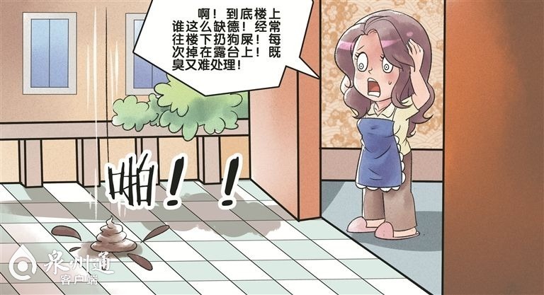 王女士家住晋江市池店镇世贸一品小区,近段时间来,她家的露台经常会冒出一坨又一坨的狗屎,而来源则是楼上养狗的住户,这让王女士十分气愤。她向小区物业反映多次,但物业工作人员只能查出是哪个户型所扔,却无法得知具体的住户。对此,王女士在致电泉州晚报社24小时热线96339投诉时表示十分无奈。