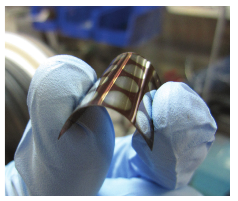 加拿大Kelly等人制备的柔性钙钛矿太阳能电池器件实物图片(图片来源:参考文献4)