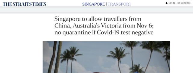 报道指出,新加坡此次单方面开放边界的规定是,如果聚合酶链反应(PCR)检测结果为阴性,乘飞机入境的游客可以继续行程,而不会接到必须居家隔离多日的通知。此外,这个规定也同样适用于从中国大陆和维多利亚州返回的新加坡公民、永久居民和长期通行证持有者。