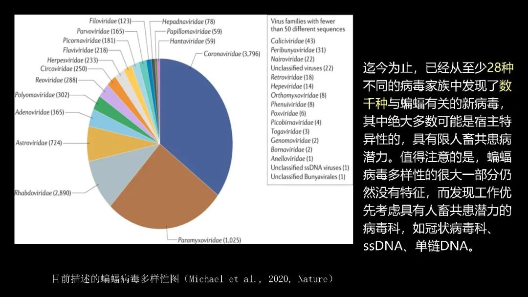 据科学所估计,现在蝙蝠体内,已经发现了大概有28个病毒家族,其中有上千个能够感染人和牲畜的病毒。这是已知的病毒,还有更多未知的。