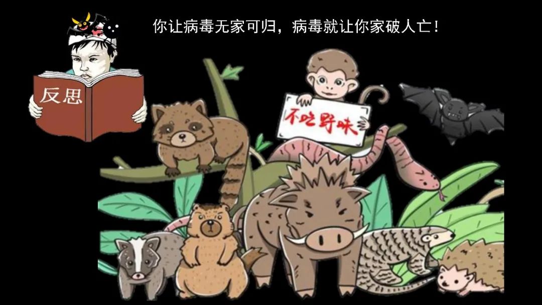 病毒,它们是一种寄生生活。人家有自己原始的宿主,你如果让病毒无家可归,那么病毒就会让你家破人亡!因为它失去了原有的宿主,为了生存,它不得已,被迫去寻找新的宿主。这就是我们为什么不要吃野味。