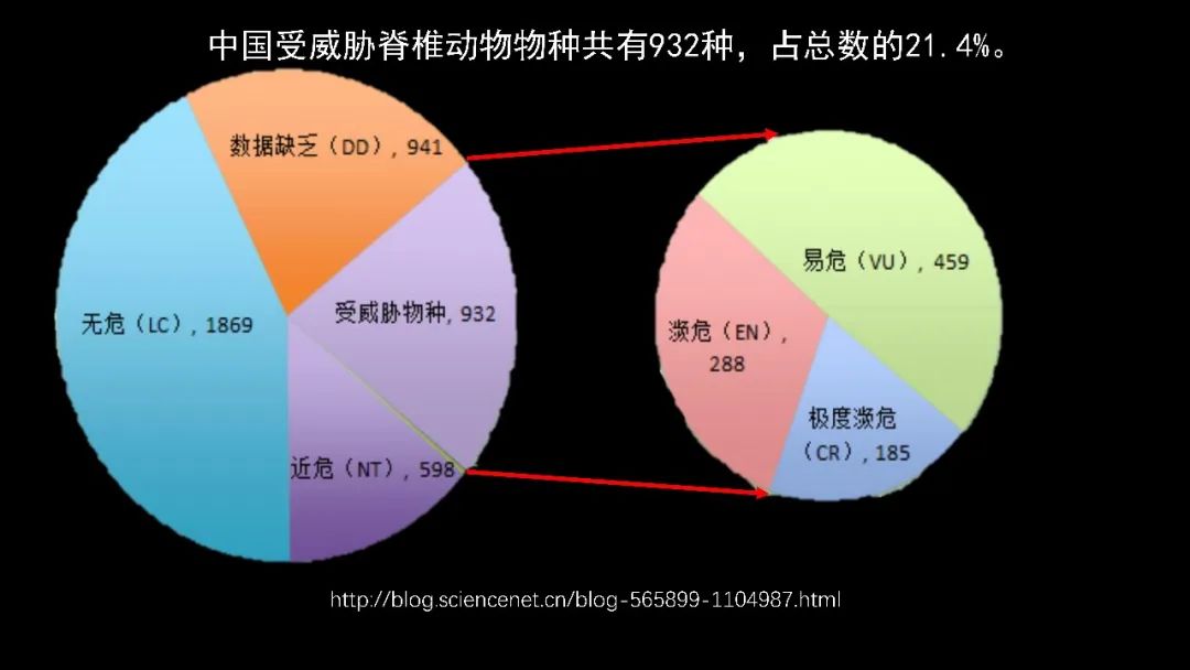 此外中国受威胁的脊椎动物有932种,已经占到了所有动物的21.4%,我们面临的生物多样性是不容乐观。