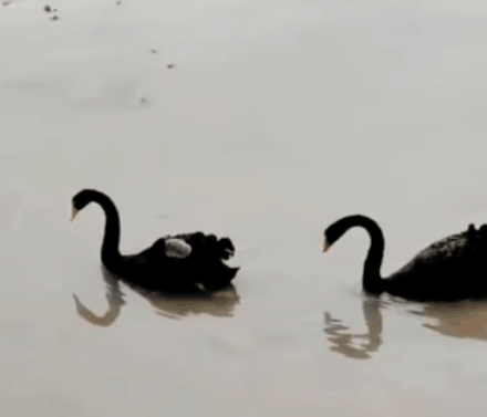 别看黑天鹅体态优雅,平日里比较温顺,但它们具有领地意识,数量多了,为了抢地盘,也会‘开战’。
