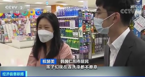 韩国仁川市居民 权赫美: 我感到很不放心,孩子们现在连洗澡都不愿意,真的非常生气,不知道该怎么办。