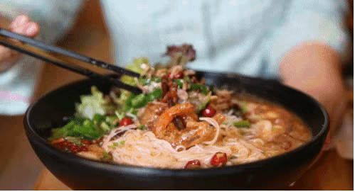 吃后安粉,正确的操作是粉汤吃完了,肉片吃完了,肉汤也要全部喝掉。