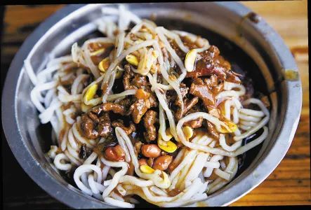 有特制过的牛肉或猪肉(有八角、茴香的味道),有芝麻粉、花生米、虾米,有卤汁、葱花、酸菜、豆芽,还有一些无法辨认的香料。