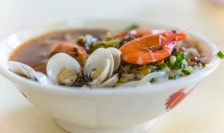 末了,剩下一点粉,加进一小碗热腾腾的海蚌汤掺和着吃,是老道食客的“秘诀”。