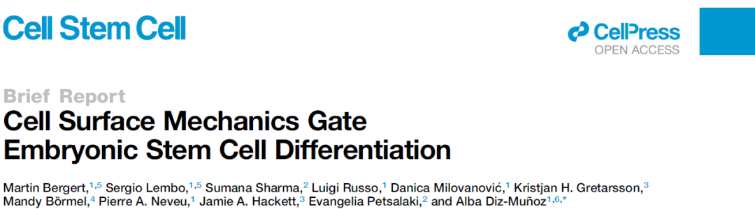 为了探究形状、机械力和命运之间的相互作用,近日,德国欧洲分子生物学实验室Alba Diz-Munoz研究组发文题为Cell Surface Mechanics Gate Embryonic Stem Cell Differentiation,利用生物物理方法对干细胞分化过程中细胞表面力学的作用进行了研究。