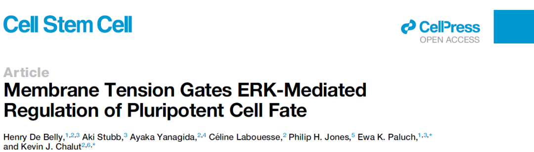 值得一提的是, 英国剑桥大学Kevin J. Chalut研究组以及英国伦敦大学学院Ewa K. Paluch研究组合作在当期Cell Stem Cell上发表背靠背文章,题为Membrane Tension Gates ERK-Mediated Regulation of Pluripotent Cell Fate,发现膜张力门控增加内吞作用会作为一个关键机制调节ERK调控的细胞命运转变。