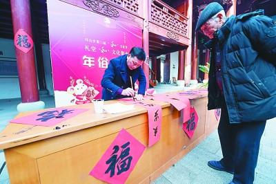 12月25日,书法爱好者在环二村文化礼堂内参加“写春联送福字”活动。新华社记者 徐昱摄