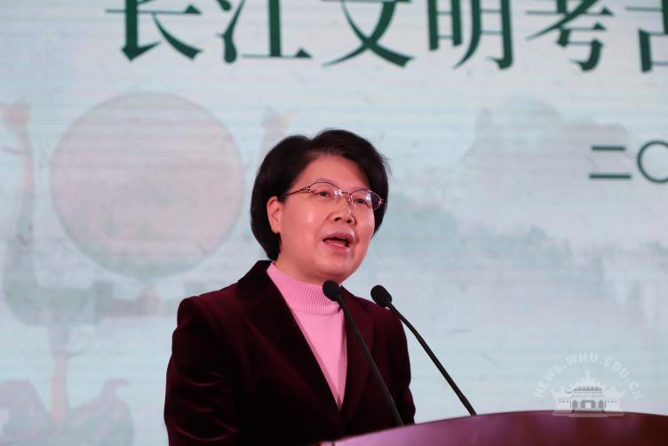 窦贤康在致辞中指出,成立湖北省新时代考古学建设共同体和长江文明考古研究院,是响应新时代全面推进“新文科”建设、实现高等教育内涵式发展的主动作为。为建好、建强共同体和研究院,武汉大学将重点打造“四个一流”:打造一流的考古文博人才培养体系、建设一流的考古文博学科群落、推进一流的考古文博科学研究、实现一流的考古文化遗产展示与利用。他表示,武汉大学将全力以赴,牵头做好湖北省新时代考古学建设共同体暨长江文明考古研究院相关工作,坚持一流标准,不断追求卓越,为提升湖北考古学的影响力和话语权作出应有贡献。