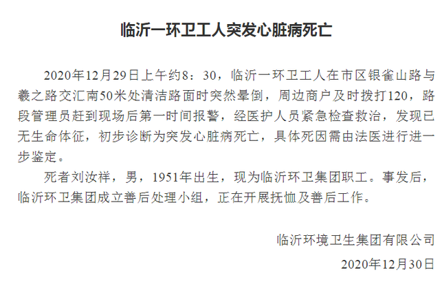 (原题为:《临沂一环卫工人突发心脏病死亡》)